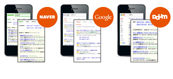 모바일검색은 포털에서 사용자가 특정 키워드 검색시, 결과 페이지를 상단에 미리 등록된 광고지로 노출되는 광고입니다.